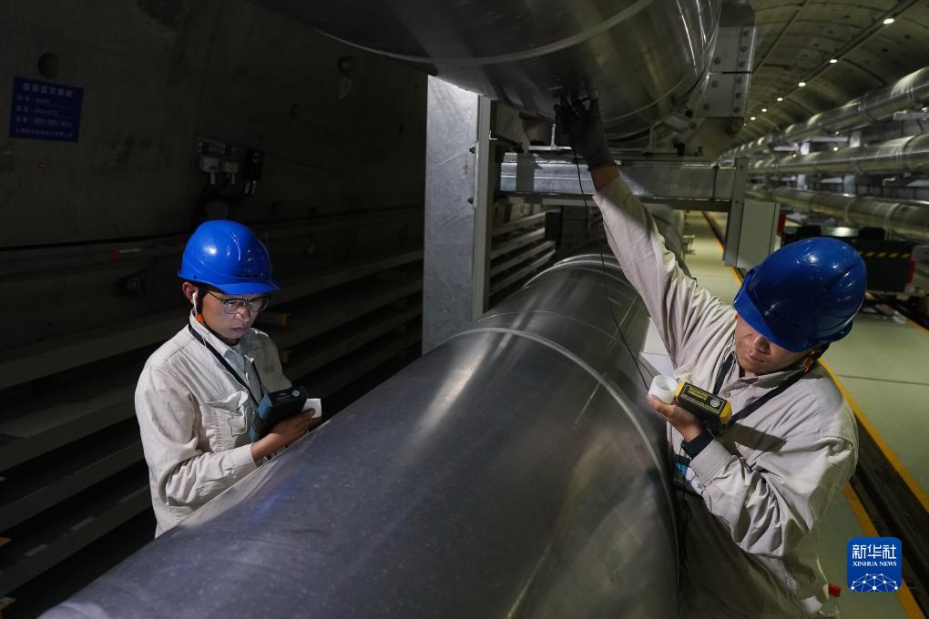 10月19日,國網(wǎng)江蘇電力工作人員在蘇通GIL管廊對運行中的電氣設備進(jìn)行帶電檢測。