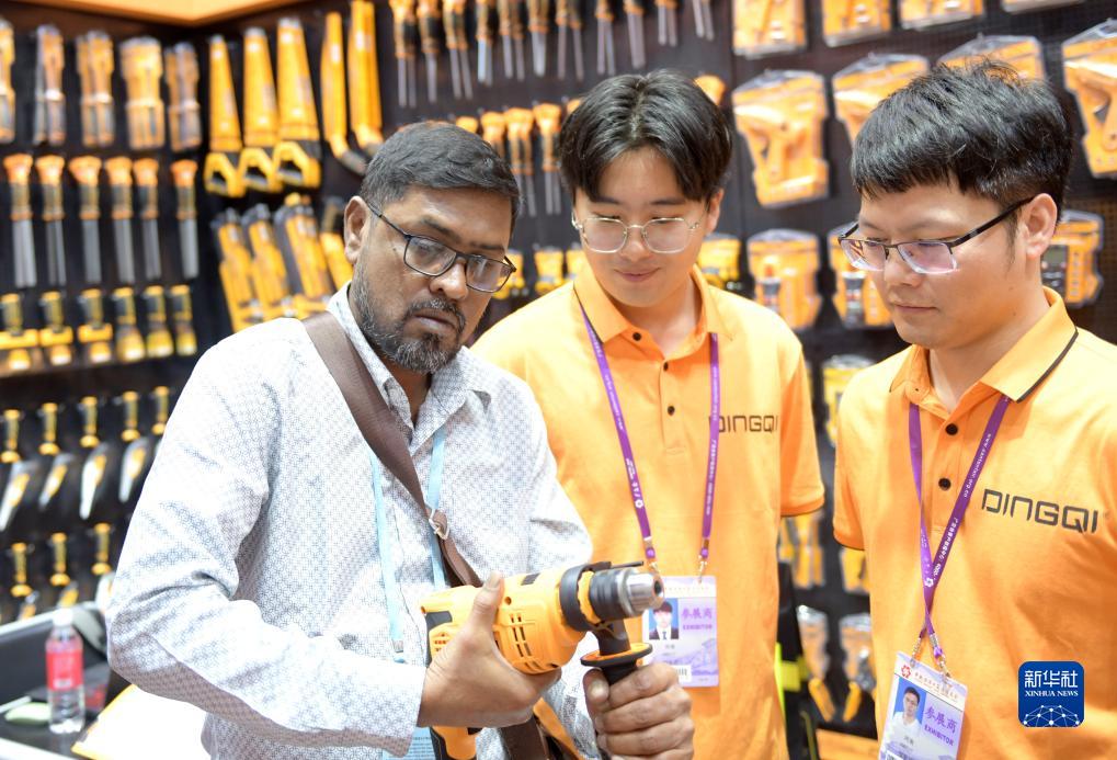 10月19日,客商在廣交會(huì )上了解一款電鉆產(chǎn)品。