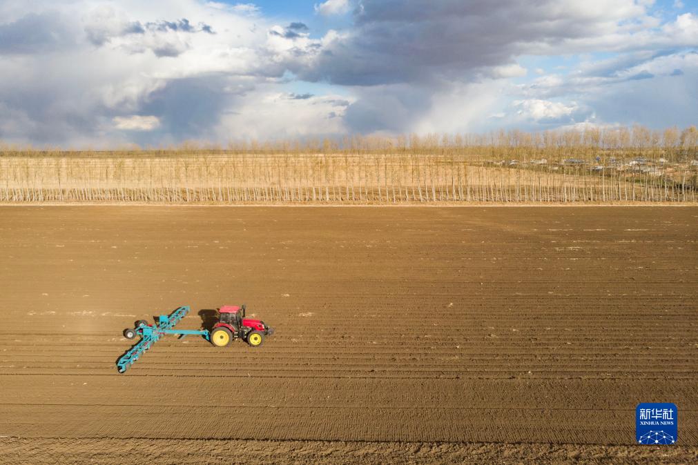 10月19日,在黑龍江省肇東市五里明鎮東升村,農民駕駛機械進(jìn)行鎮壓保墑作業(yè)(無(wú)人機照片)。