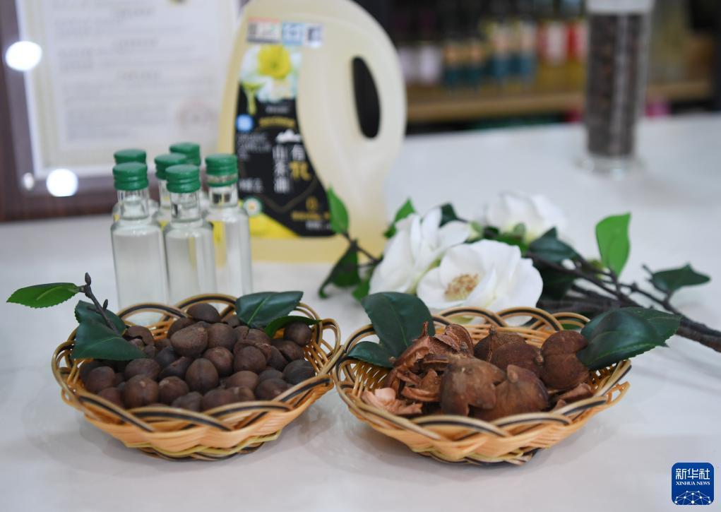 這是在位于乳源瑤族自治縣的廣東寶華農業(yè)科技股份有限公司內展示的油茶果以及茶油制品(10月19日攝)。