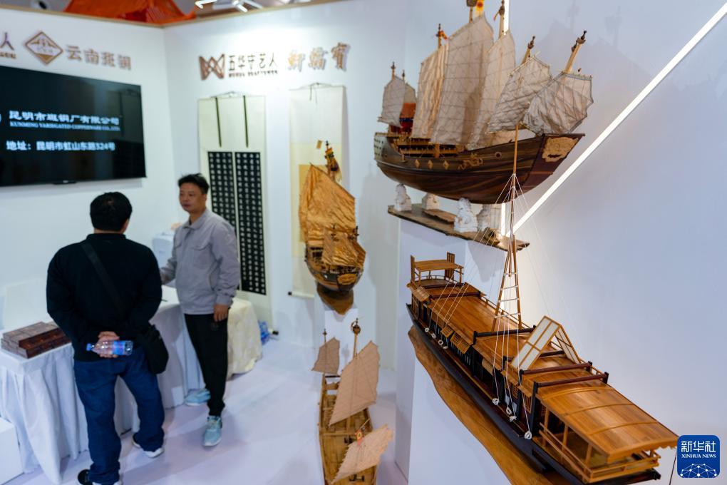 這是10月20日在創(chuàng )意云南文化產(chǎn)業(yè)博覽會(huì )上拍攝的木船模型。