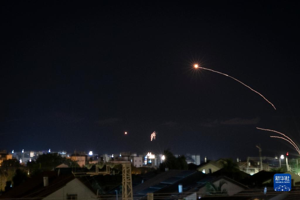當晚,來(lái)自加沙的火箭彈不斷射向以色列南部邊境城市。以色列“鐵穹”防御系統劃破夜空進(jìn)行攔截。