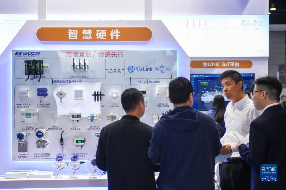 10月21日,觀(guān)眾在2023世界物聯(lián)網(wǎng)博覽會(huì )活動(dòng)現場(chǎng)參觀(guān)智能硬件。