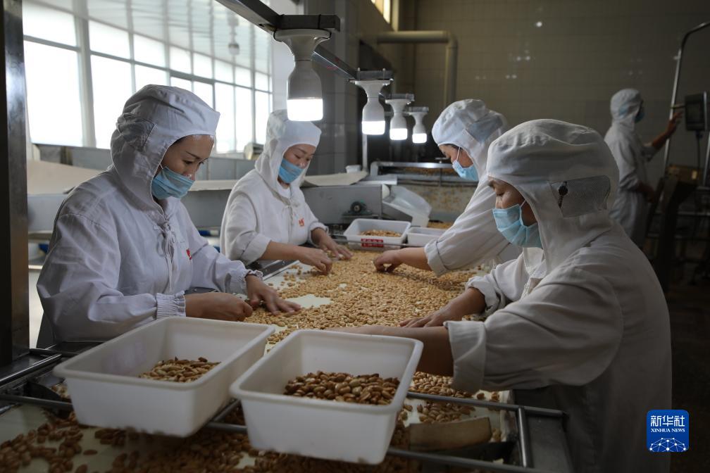 10月21日,在山東省臨沂市蘭山區一家食品企業(yè)車(chē)間,工人對花生進(jìn)行深加工。