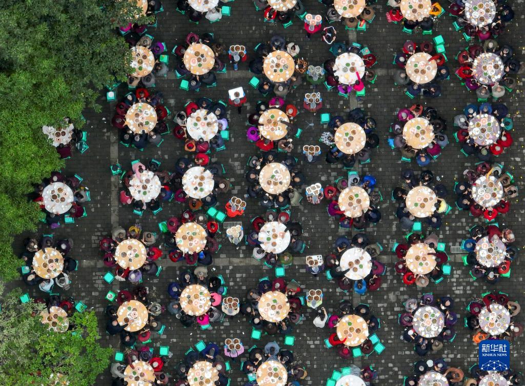 10月19日拍攝的華巖鎮石龍社區“長(cháng)壽宴”活動(dòng)現場(chǎng)(無(wú)人機照片)。