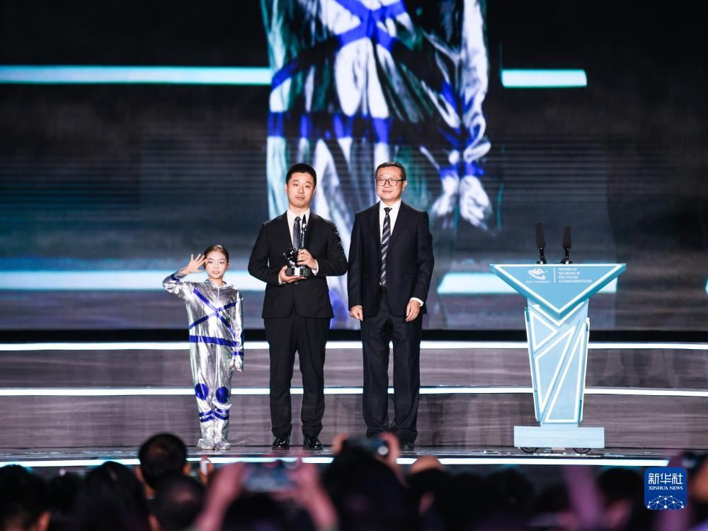 10月21日,中國作家海漄(中)創(chuàng )作的《時(shí)空畫(huà)師》獲最佳短中篇小說(shuō)獎。新華社記者 王曦 攝