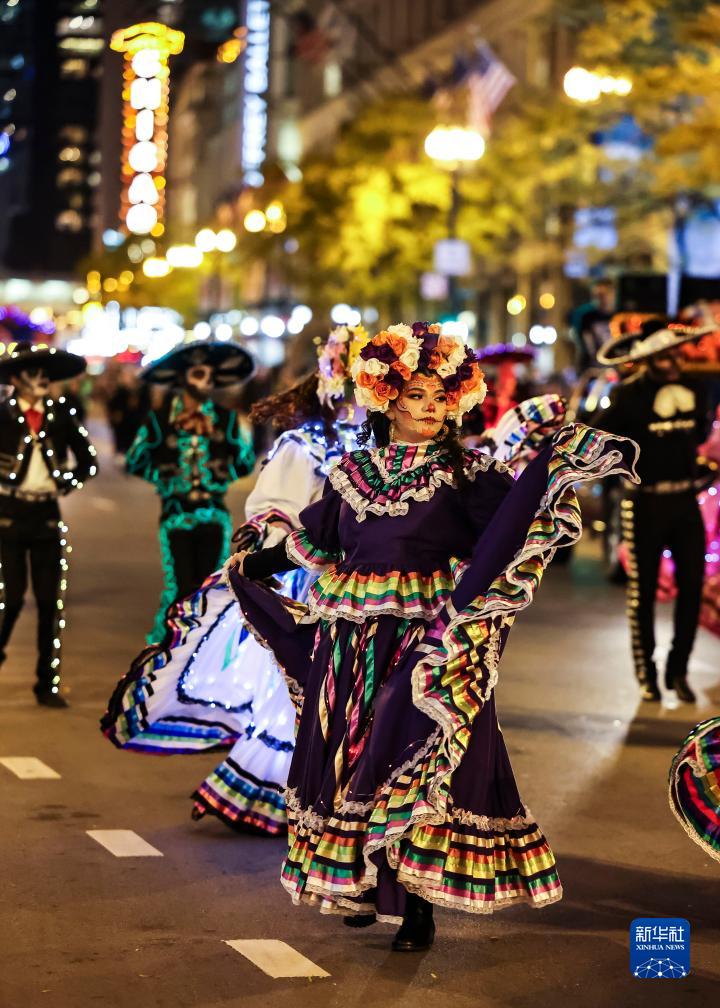 當日,美國芝加哥舉行名為“黑暗中的藝術(shù)”的萬(wàn)圣節游行。