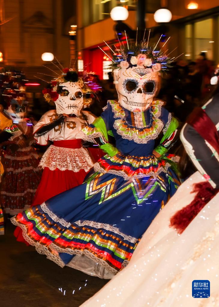 當日,美國芝加哥舉行名為“黑暗中的藝術(shù)”的萬(wàn)圣節游行。