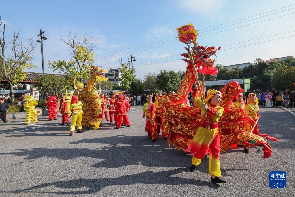 10月22日,香榧手工炒制大賽現場(chǎng)進(jìn)行傳統舞龍表演,慶祝香榧豐收。