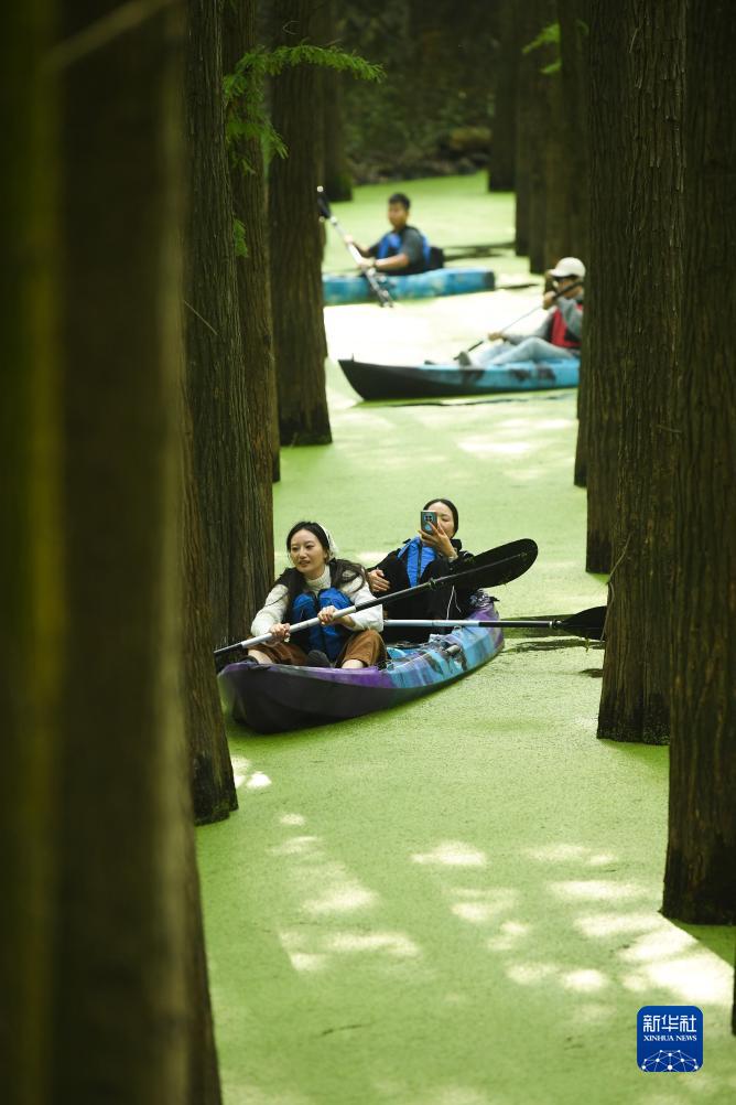 10月22日,游客在杉樹(shù)林間泛舟。
