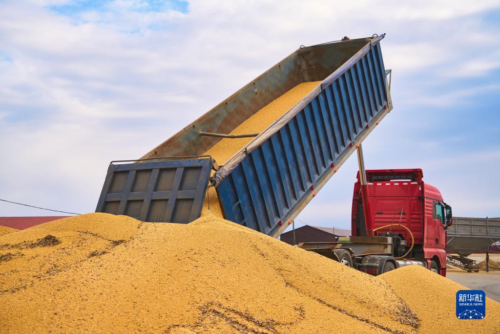 10月22日,在俄羅斯遠東城市烏蘇里斯克,一輛卡車(chē)正在卸載收獲的大豆。
