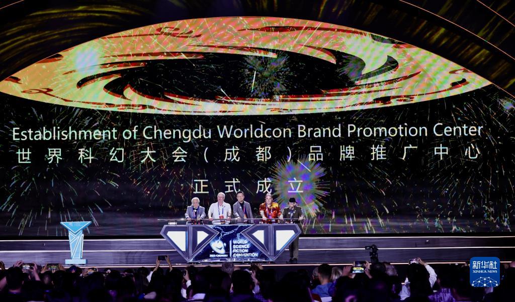 10月22日晚,在第81屆世界科幻大會(huì )閉幕式上,嘉賓見(jiàn)證世界科幻大會(huì )(成都)品牌推廣中心成立。