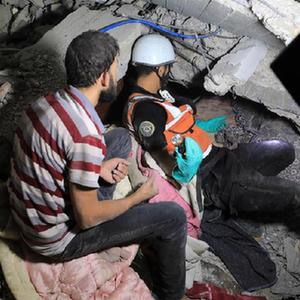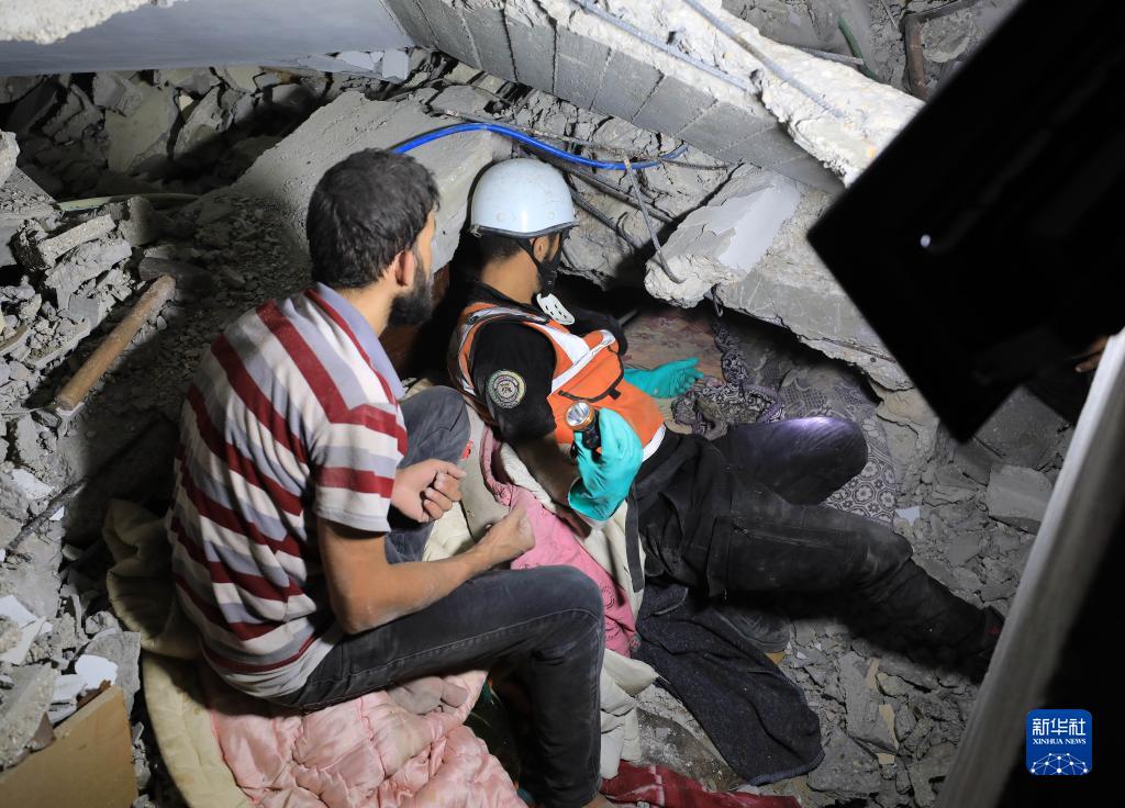 10月22日,在加沙城,人們在遭以色列襲擊損毀的建筑中實(shí)施救援。