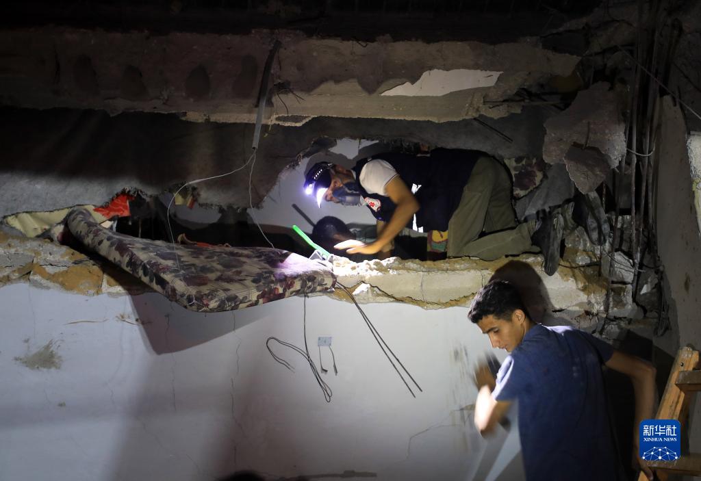 10月22日,在加沙城,人們在遭以色列襲擊損毀的建筑中實(shí)施救援。