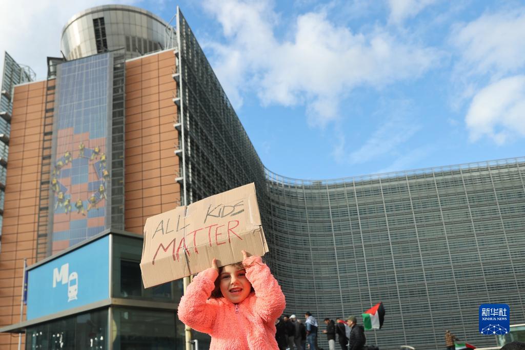 10月22日,在位于比利時(shí)布魯塞爾的歐盟總部附近,一名女孩手舉“所有孩子都重要”的標語(yǔ)參加集會(huì )。