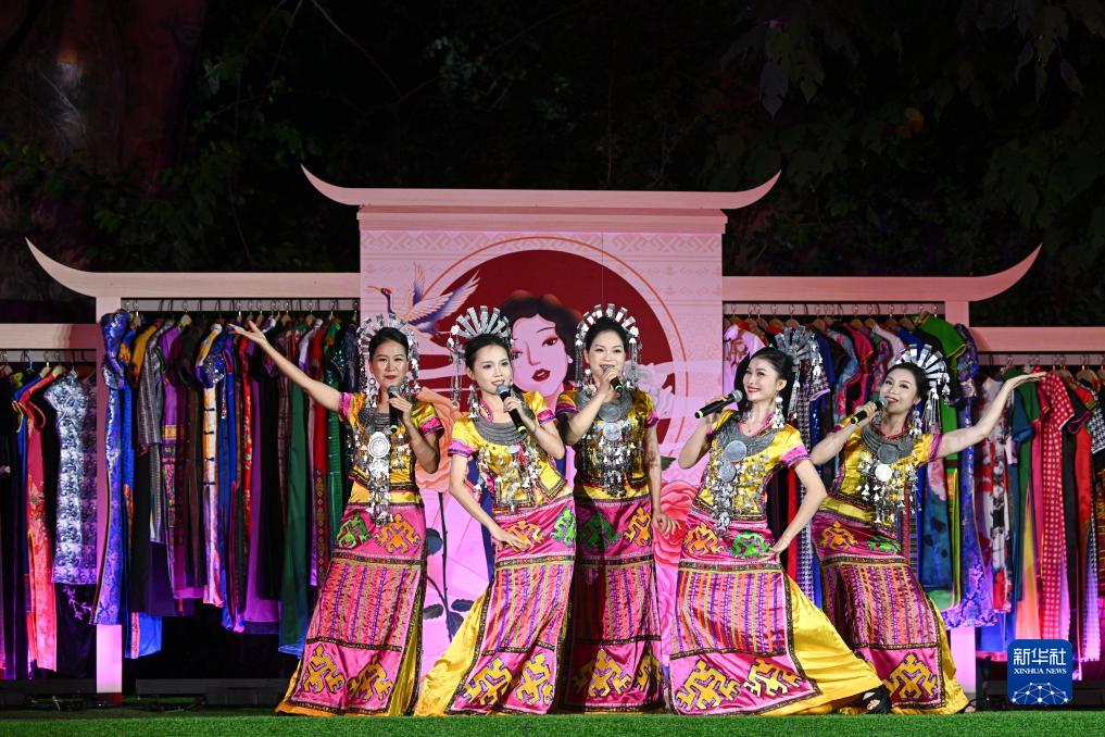 10月22日在海南省五指山市拍攝的民族時(shí)裝“村秀”重陽(yáng)特別專(zhuān)場(chǎng)活動(dòng)現場(chǎng)。