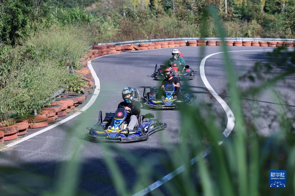 10月23日,游客在建德市楊村橋鎮嶺源樂(lè )活島休閑基地體驗卡丁車(chē)。