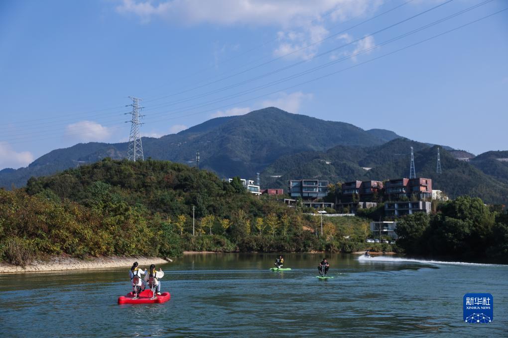 10月23日,游客在建德市楊村橋鎮嶺源樂(lè )活島休閑基地體驗水上運動(dòng)項目。