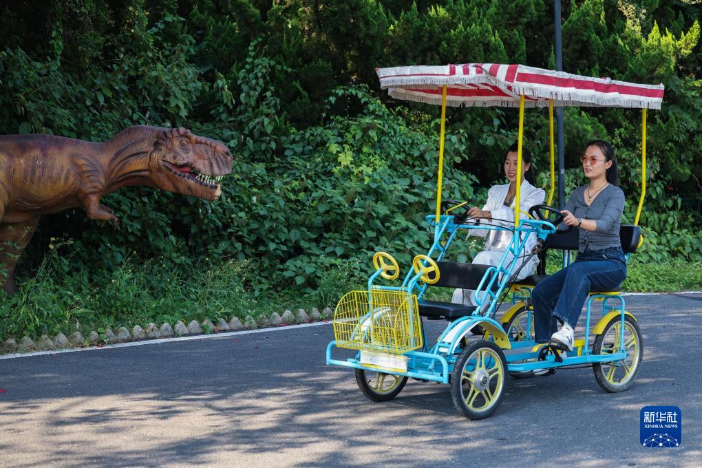 10月23日,游客在建德市楊村橋鎮嶺源樂(lè )活島休閑基地體驗自行車(chē)騎行。