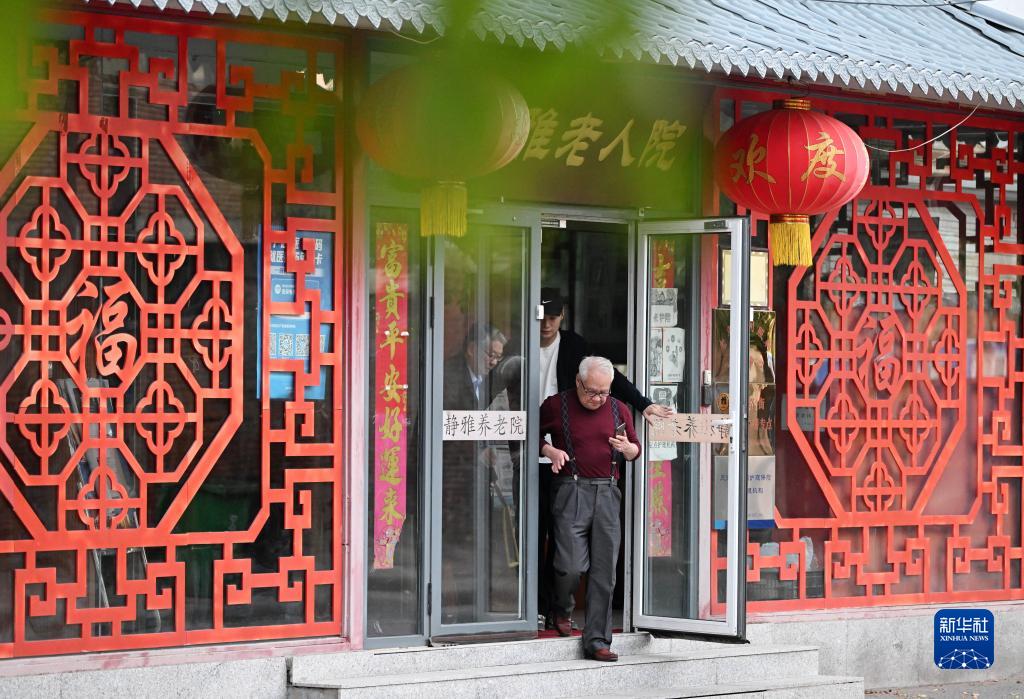 在靜雅老人院門(mén)口,陳卓準備和兩位老人外出(10月21日攝)。