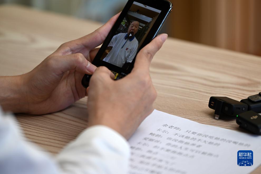陳卓在靜雅老人院用手機剪輯視頻(10月20日攝)。