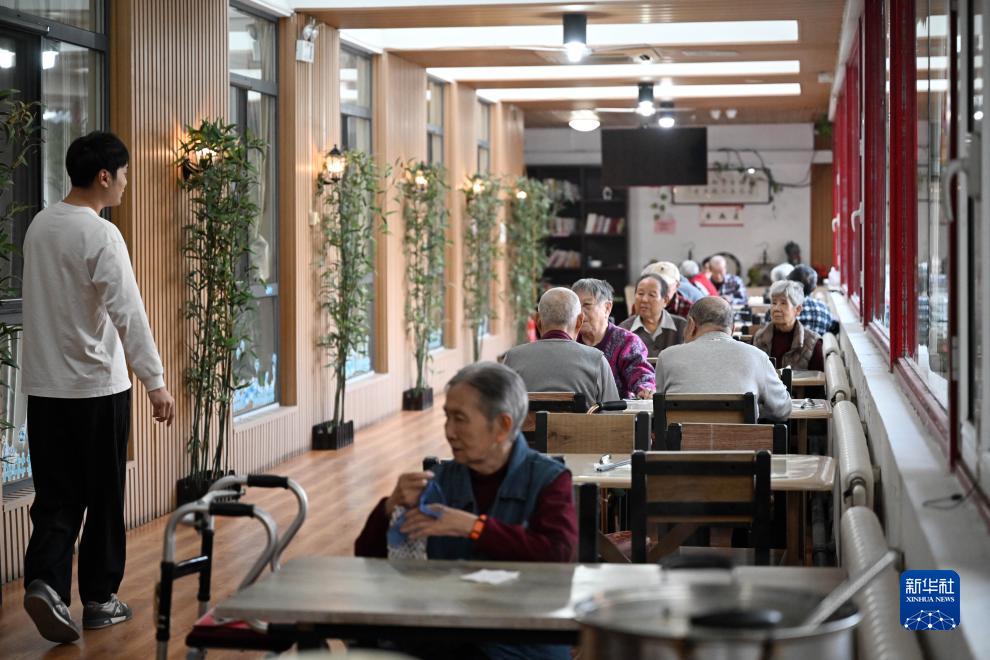10月21日,晚飯前陳卓(左一)在靜雅老人院餐廳忙碌。