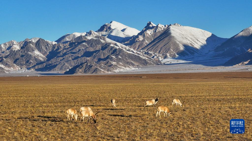 10月18日,在阿爾金山國家級自然保護區,藏羚棲息覓食(無(wú)人機照片)。