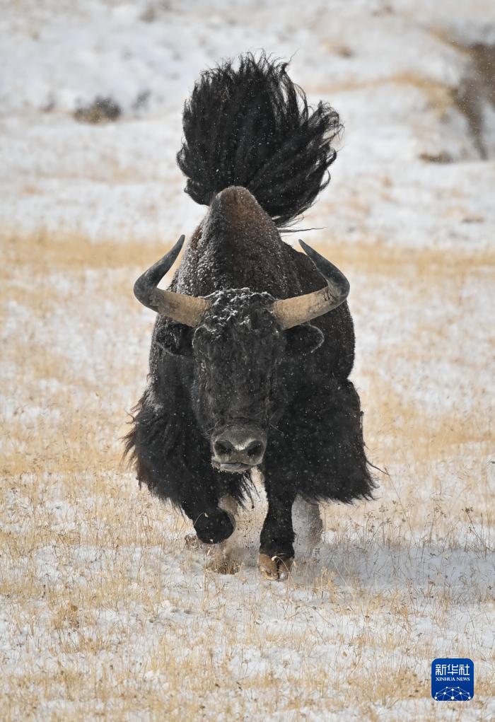 10月16日在阿爾金山國家級自然保護區拍攝的一頭發(fā)怒的野牦牛。