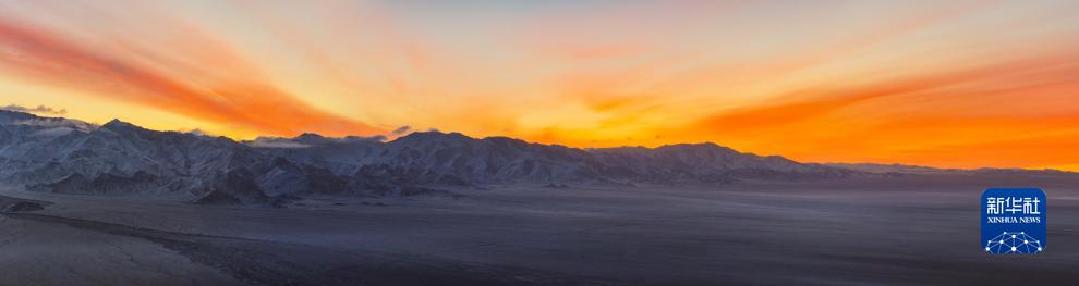10月17日在阿爾金山國家級自然保護區拍攝的朝霞(無(wú)人機拼接照片)。