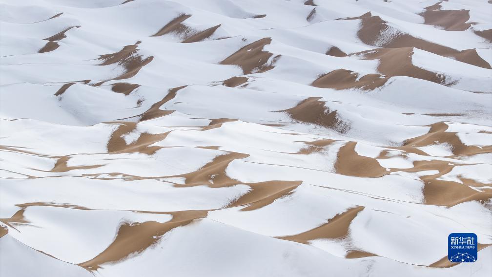 10月16日在阿爾金山國家級自然保護區拍攝的雪后庫木庫里沙漠(無(wú)人機照片)。