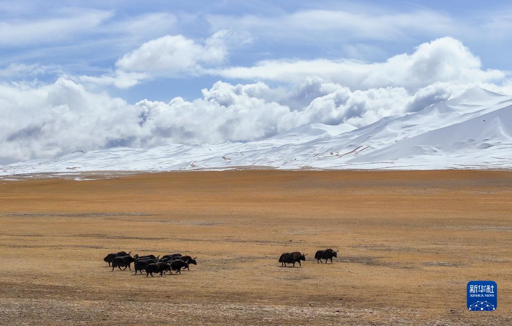 10月16日在阿爾金山國家級自然保護區拍攝的野牦牛(無(wú)人機照片)。