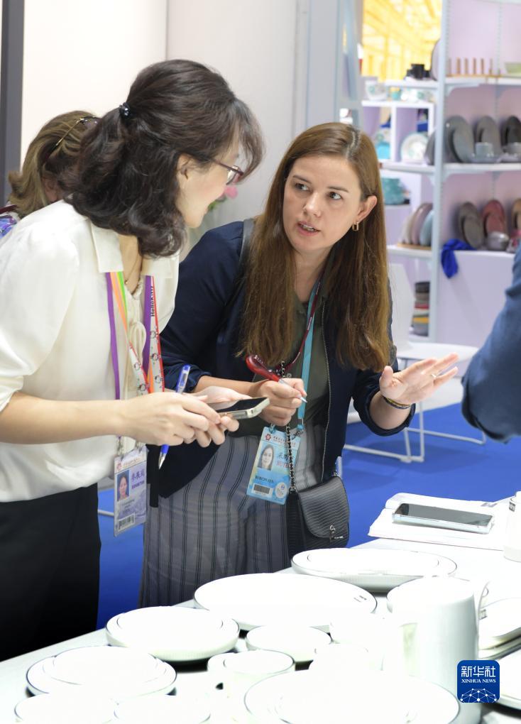 10月23日,客商在廣交會(huì )上選購陶瓷產(chǎn)品。
