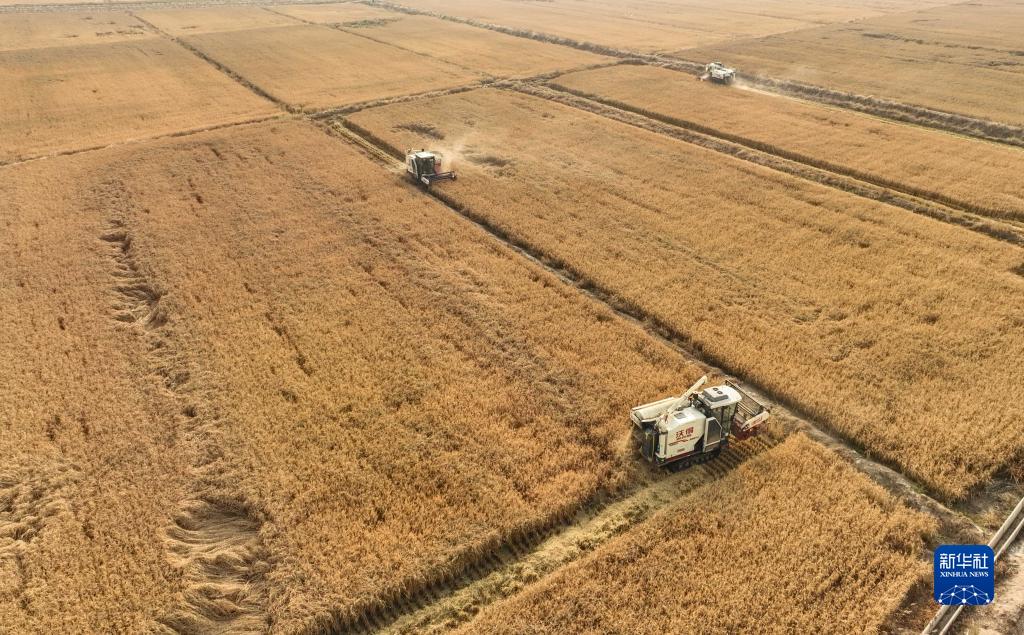 金秋時(shí)節,遼寧省阜新市彰武縣大冷鎮上三家子村的稻田里機聲隆隆,一片豐收的繁忙景象。
