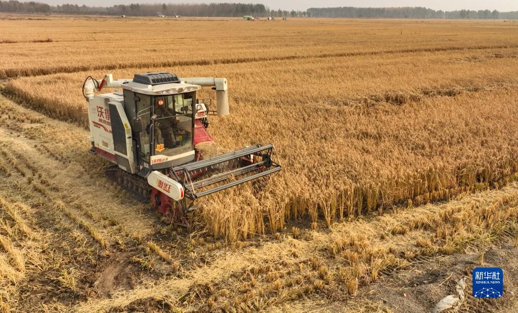 金秋時(shí)節,遼寧省阜新市彰武縣大冷鎮上三家子村的稻田里機聲隆隆,一片豐收的繁忙景象。