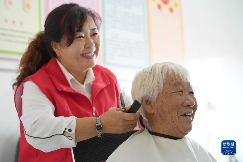 10月23日,志愿者在河北省石家莊市鹿泉區段莊村為老人理發(fā)。