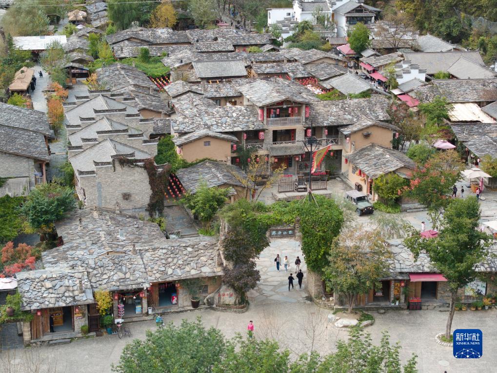 朱家灣村終南山寨民俗文化村(10月21日攝,無(wú)人機照片)。