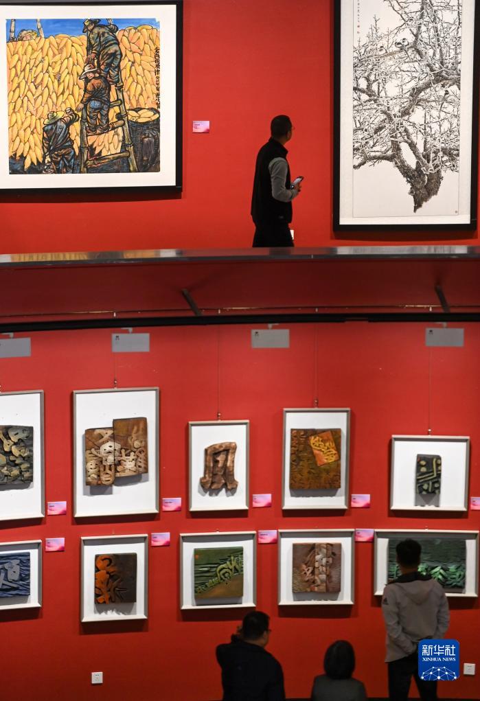 10月24日,參觀(guān)者在陜西省美術(shù)博物館欣賞藝術(shù)作品。