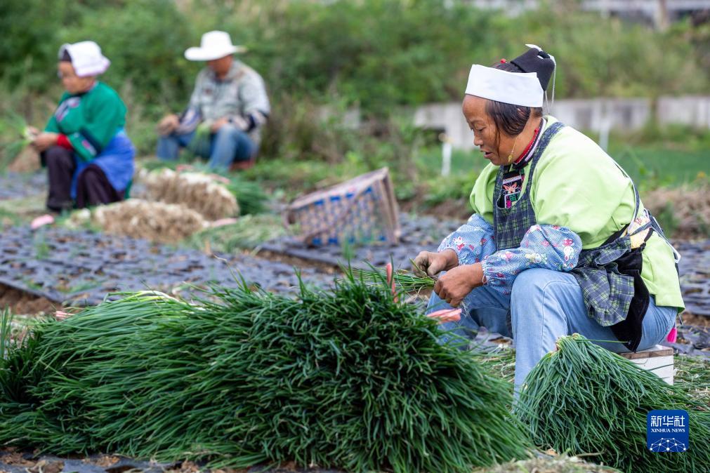 10月24日,農民在貴州省安順市西秀區七眼橋鎮九龍屯村田間采收香蔥。