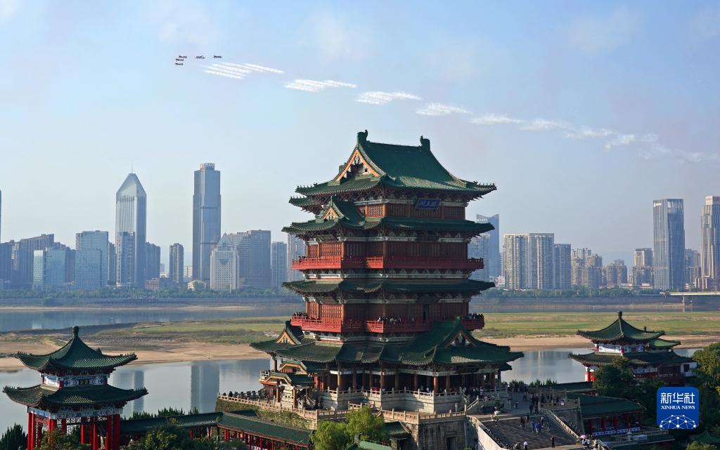 當日,2023中國航空產(chǎn)業(yè)大會(huì )暨南昌飛行大會(huì )組織空軍航空大學(xué)“紅鷹”飛行表演隊與歐洲環(huán)球之星特技飛行表演隊駕駛飛機在南昌市區上空進(jìn)行了特技飛行表演,飛越滕王閣上空。