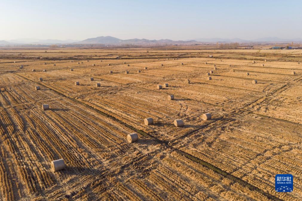 這是10月18日拍攝的黑龍江省尚志市河東朝鮮族鄉已收獲的田地和打捆后的秸稈(無(wú)人機照片)。