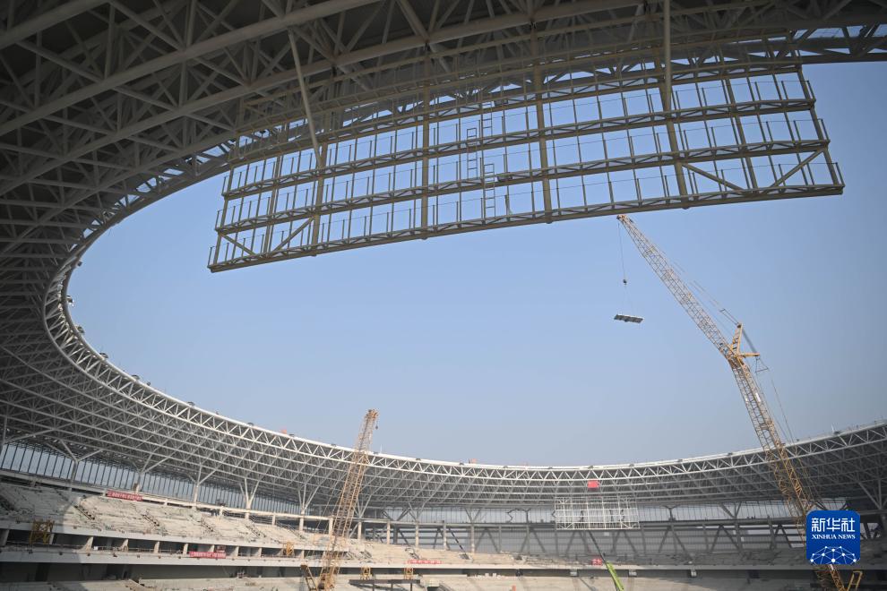 建設中的雄安體育中心體育場(chǎng)內景(10月24日攝)。