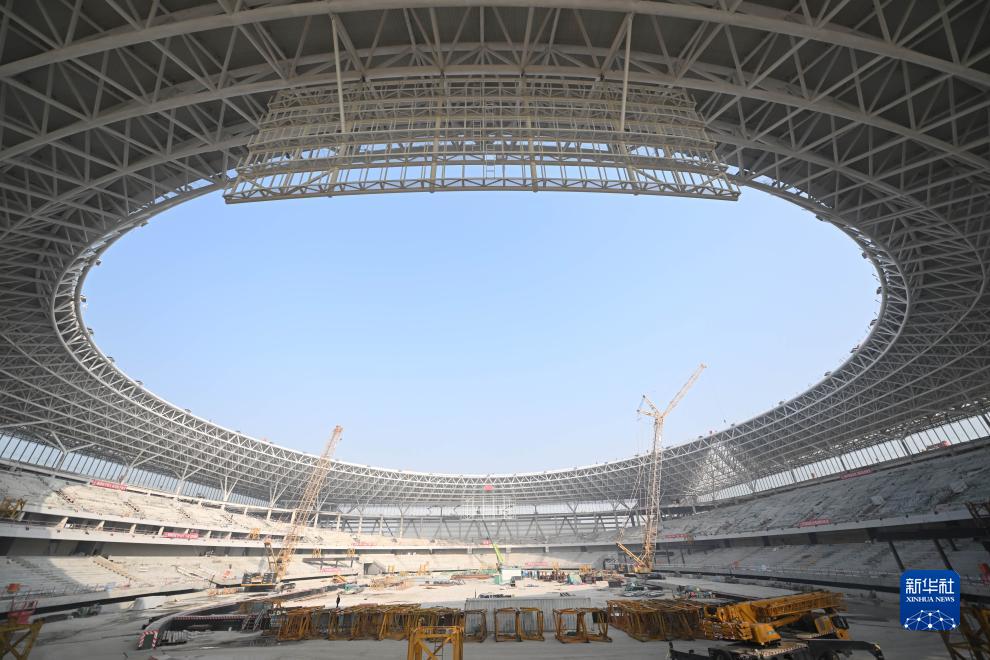 建設中的雄安體育中心體育場(chǎng)內景(10月24日攝)。