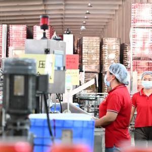 10月24日,工人在貴州王老吉刺檸吉惠水基地飲料灌裝車(chē)間內工作。