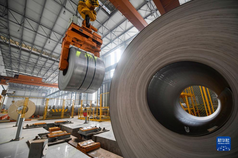 10月24日,在位于雙灤區的一家釩鈦新材料企業(yè)冷軋產(chǎn)品車(chē)間,無(wú)人智慧天車(chē)在吊裝酸洗卷板。