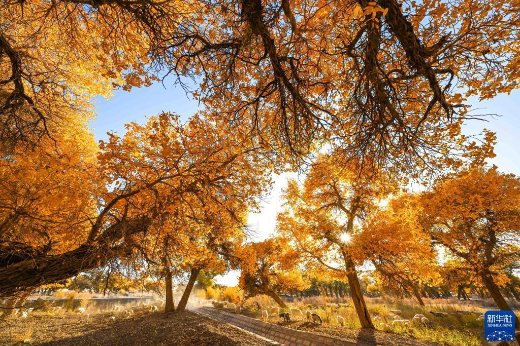 金秋時(shí)節,內蒙古自治區阿拉善盟額濟納旗的胡楊林披上“金裝”。