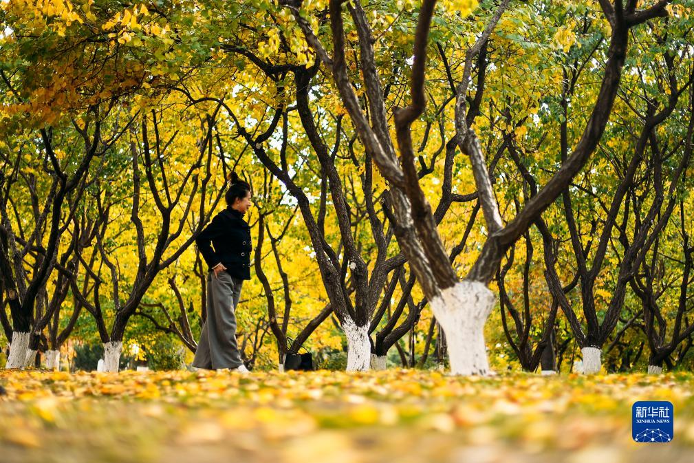 市民在長(cháng)春市文化廣場(chǎng)欣賞秋景(10月19日攝)。