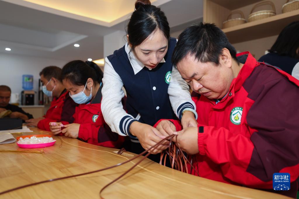 10月25日,黨員志愿者在杭州市臨安區玲瓏街道玲溪社區黨群服務(wù)中心共富工坊指導工人加工手工藝品。該工坊提供輕強度手工的輔助性就業(yè)崗位,目前已有46名殘疾人在這里實(shí)現家門(mén)口就業(yè)。