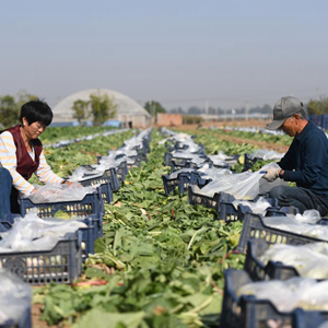 10月25日,辛集市辛集鎮辛洲蔬菜種植基地的工人在搬運蘿卜。該基地種植的蘿卜按訂單銷(xiāo)往日本。