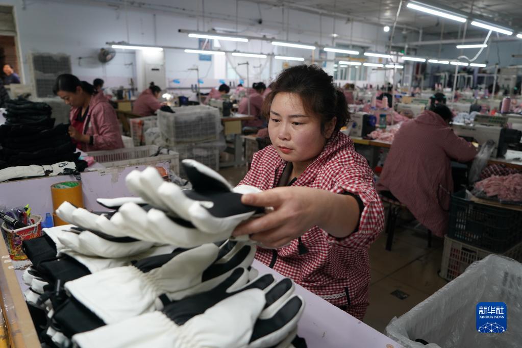 10月25日,辛集市辛集鎮安古城村一家手套生產(chǎn)企業(yè)的工人在制作手套。