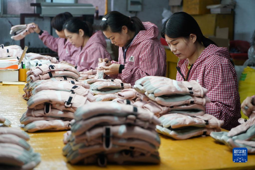10月25日,辛集市辛集鎮安古城村一家手套生產(chǎn)企業(yè)的工人檢查手套產(chǎn)品質(zhì)量。